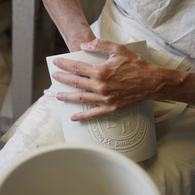 Sculpturales, les grandes bougies Diptyque témoignent du savoir-faire des céramistes de l’atelier Virebent, l’un des ateliers céramistes partenaires de la Maison en France et en Europe.